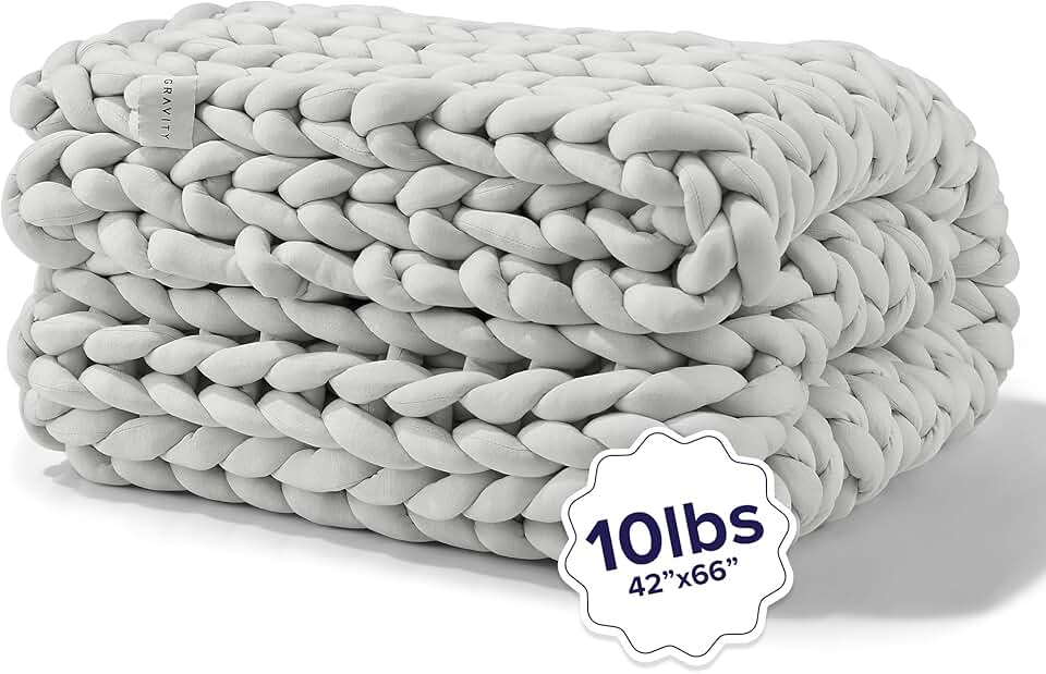 Blanket Weighted Chunky Knit Blanket, Hand Knitted Blanket, 10 lbs Soft Grey, 42"x 66", Weighted Blanket for Sleep, Jersey, Breathable Throw Blanket