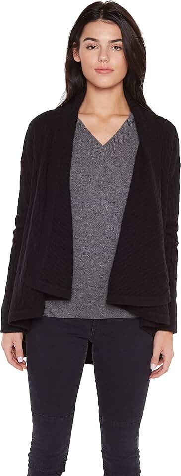 JENNIE LIU Women's 100% Pure Cashmere 4-ply Cable-Knit Drape-Front Open Cardigan Sweater