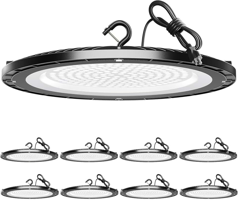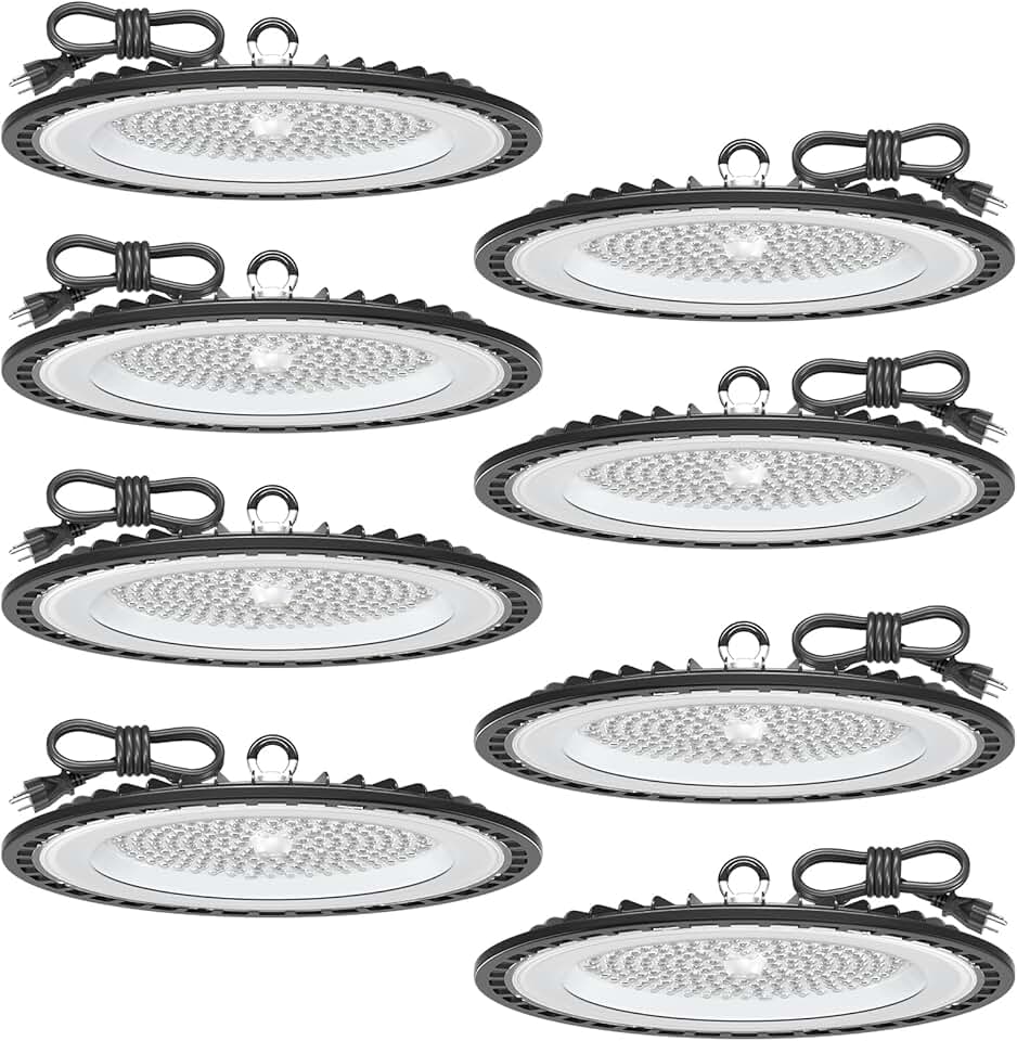 UFO LED High Bay Light 150W 22500LM 5000K, 600W HID/HPS Replacement, Cable with Plug, Ultrathin Led High Bay Shop Lights for Warehouse Garage Gym, Workshop 8Pack