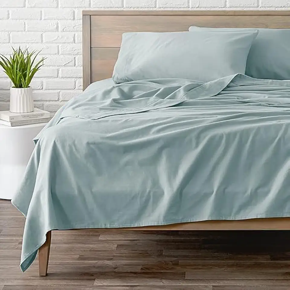 CinchFit USA No Tear Universal Split Top King Size Fits All Sleep Number Beds & All Top Split Length Sizes Solid Flannel 100 Percent Cotton, 4PC Sheet Set(Light Blue, Split Flex Top - King)