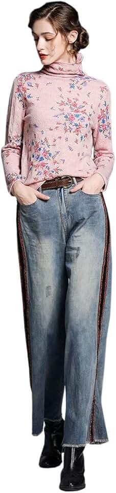 Women's Wool Printed Knitted Turtleneck Long Sleeve Warm Pullover Sweater Dresses Tops 005