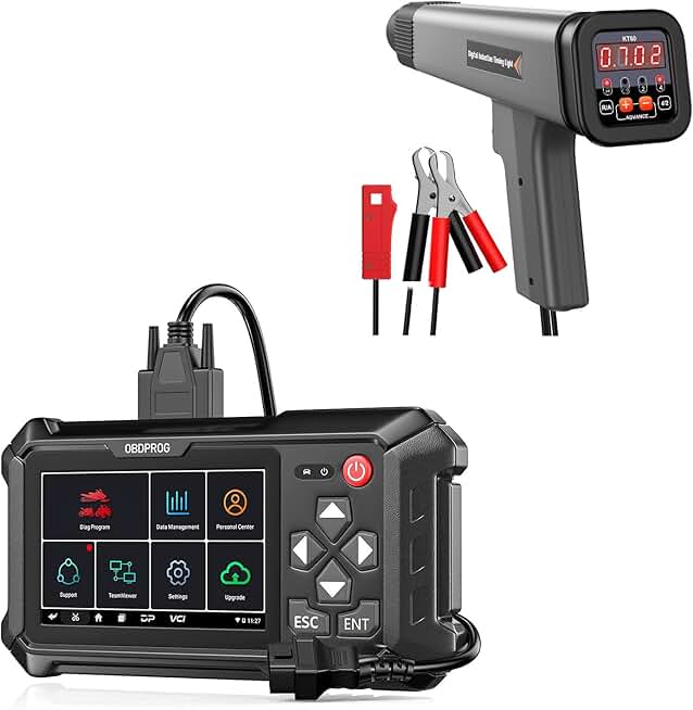 OBDPROG Moto 100 Motorcycle Scanner for Ducati KtmTriumph Yamaha Honda Automotive OBD Code Reader and KZYEE KT60 Digital Timing Light