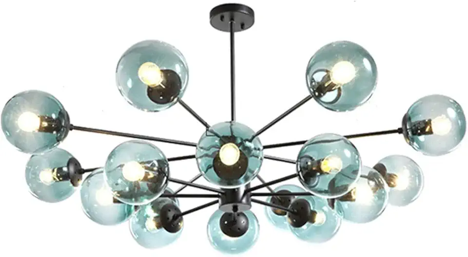 Black Modern Chandelier Adjustable Height Glass Ceiling Lamp E27 Chandelier for Bedroom Hallway Closet Entryway Stairs,6Heads-16Heads(5 Specifications)-Black 16T