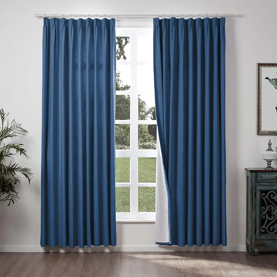 ChadMade 84" W x 96" L Polyester Linen Drape with Blackout Lining Pinch Pleat Curtain for Sliding Door Patio Door Living Room Bedroom, (1 Panel) Navy Blue Tallis Collection