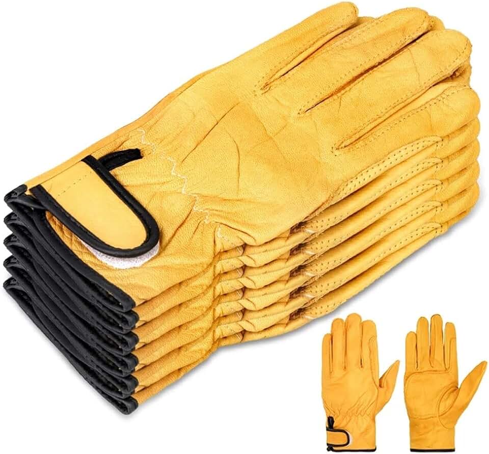 Cowhide Work Gloves Yellow Men Hand Soft Construction Site Safety Leather Working Gloves Suit 5pcs(Medium)