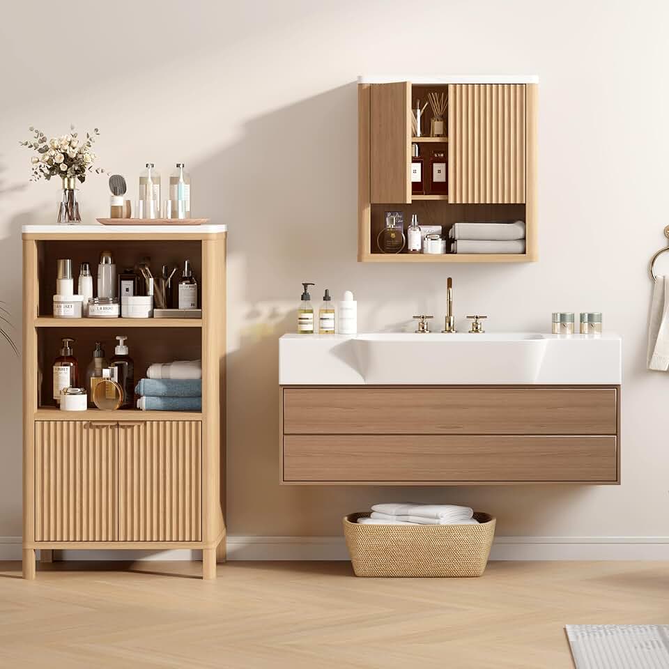HOMEFORT Bathroom Wall Cabinet and Floor Storage Cabinet, Open Compartment, Adjustable Shelf, Accent Furniture for Bathroom, Kitchen, Living Room, Dining Room, Natural Oak