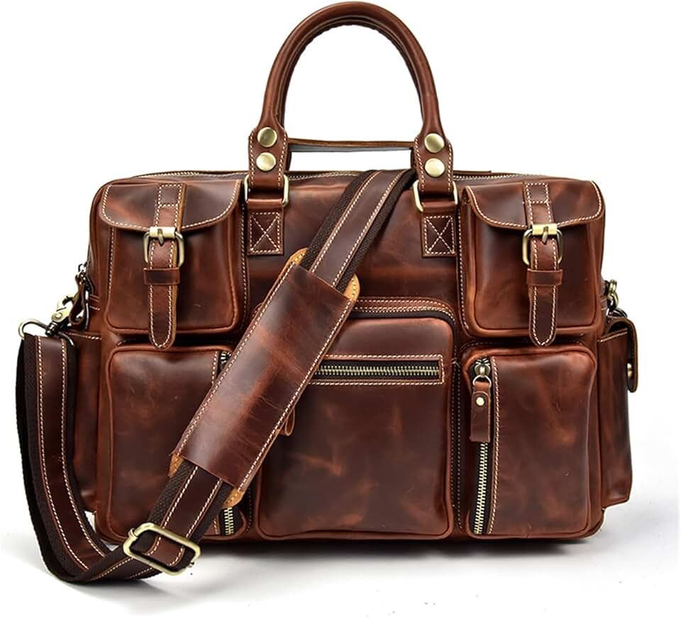 CSCDD Vintage Men's Document Leather Large Capacity Tote Shoulder Crossbody Bag Work Commute Computer Bag