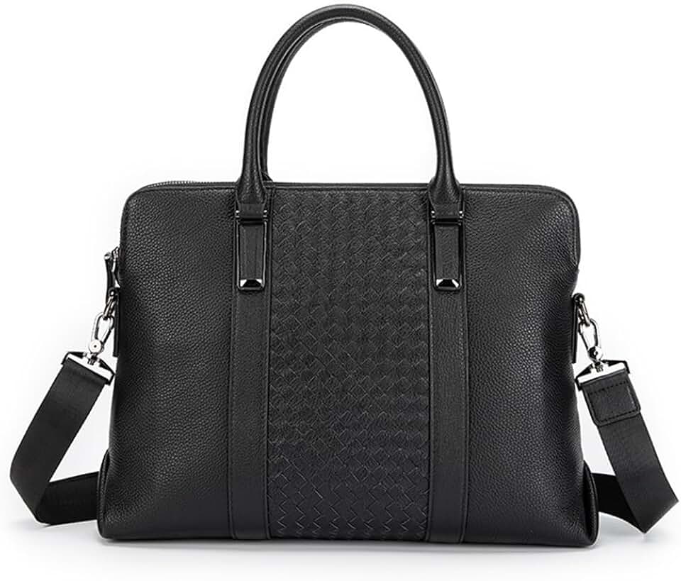 CSCDD Leather Tote Top Layer Cowhide Hand-Woven Men's Business Briefcase Computer Bag