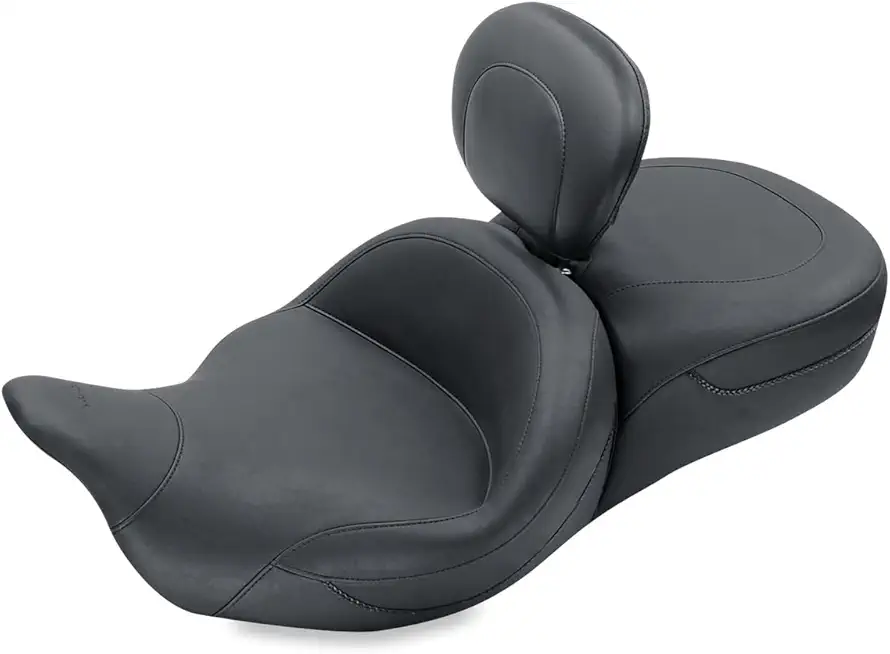 Mustang 79556 Super Touring One-Piece 2-Up Motorcycle Seat with Driver Backrest for Harley-Davidson FL Touring 2008-19, Black