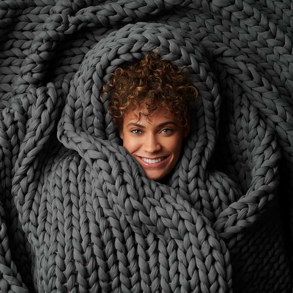 Cotton Hand-Knit Weighted Blankets for Adults - Chunky Knit Blanket - Sustainable, Breathable, Organic, Cooling Weighted Blanket - Machine Washable (Asteroid Grey, 20 Lbs)