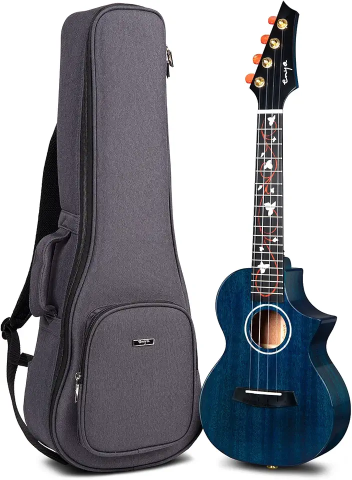 EUT-M6 Cutaway Blue Tenor Ukulele 26 Inch All Solid Mahogany with DAddario Strings,Luxury Gig bag,Beautiful Inlay and Gloss Finish