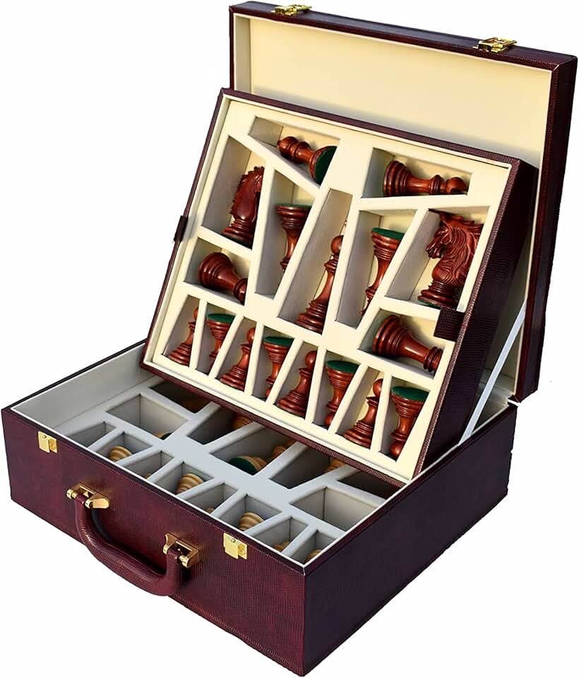 The Chess Empire--The Executive Series Burgundy leatherette chess pieces storage box for 4.25" to 4.75" king chess pieces