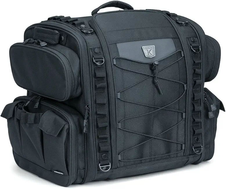 Kuryakyn 5284 Momentum Road Warrior Motorcycle Travel Luggage: Weather Resistant Seat/Trunk/Rack Bag with Sissy Bar Straps, Black