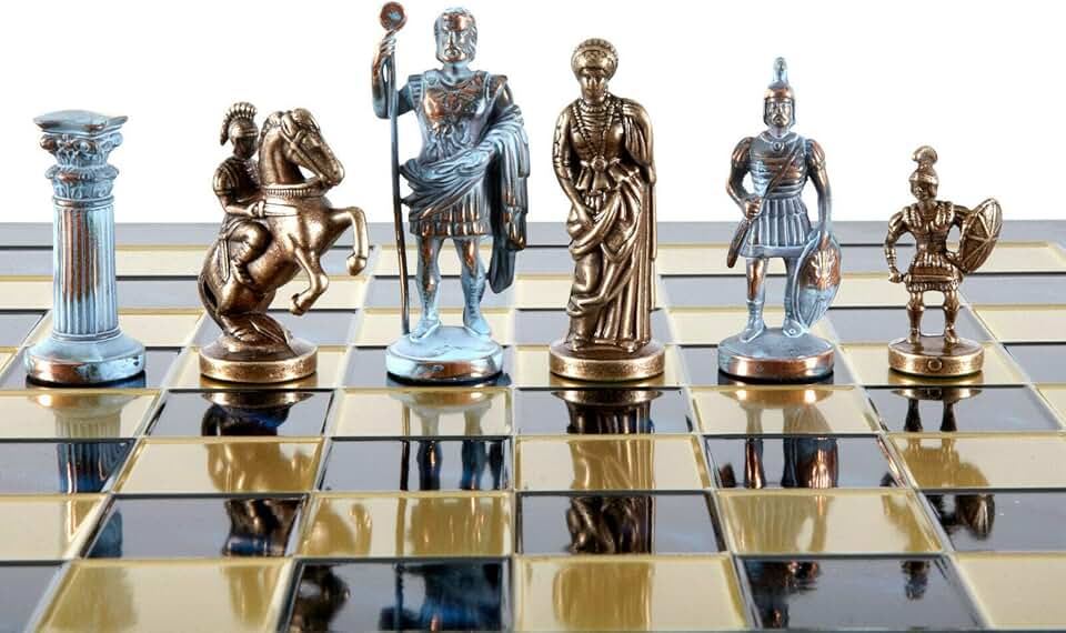Greek Roman Army Large Chess Set - Blue&Copper - Blue Chess Board