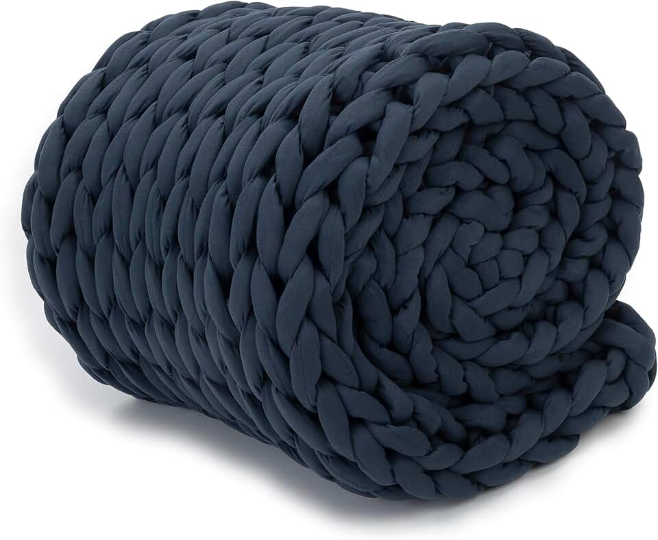 Chunky Knit Blanket - Breathable, Cooling, Hand Made Knit Throw Blanket for Sleep - Machine Washable, Stylish Decor Design (Dusty Blue, Throw | 12lbs | 44"x60")