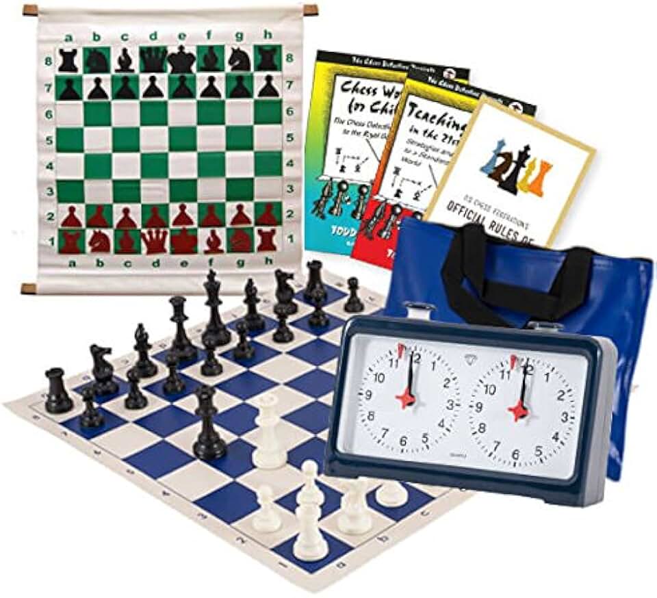 Scholastic Chess Club Starter Kit - for 10 Members - with Diamond Quartz Analog Chess Clocks - Blue