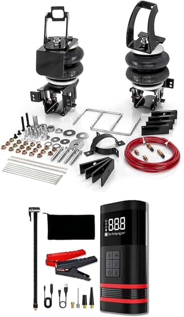 TORQUE Portable Air Compressor and Air Suspension Bags Kit for 2011-2016 Ford F250 F350 and 2011-2013 Ford F450 2WD 4WD F-250 F-350 Super Duty Rear Helper Bag Spring 5000 lbs