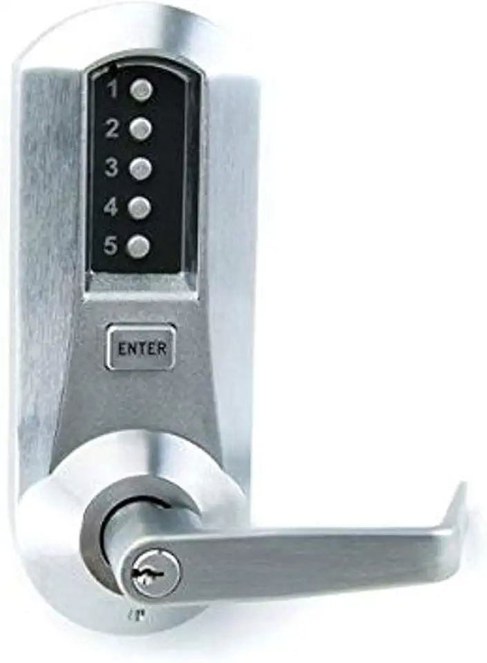 5021XSWL26D Kaba 5000 Series Cylindrical Mechanical Pushbutton Lock, 13mm Throw Latch, Floating Face Plate, 70mm Backset, Kaba Cylinder (Schlage"C" Keyway) Included, Winston Lever, Satin Chrome Finish