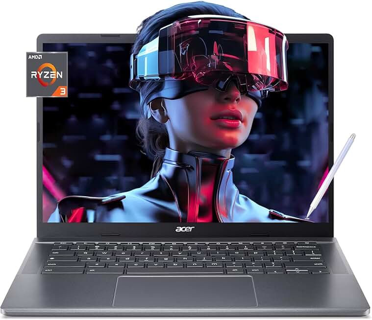 acer Chromebook Laptop Touchscreen 2024 - Stylus Pen - 8GB RAM | 256GB PCIe SSD - 14inch WUXGA Display - AMD Ryzen 3-7320C - Google Chrome - Backlit Keyboard - Mini Laptop - School Student