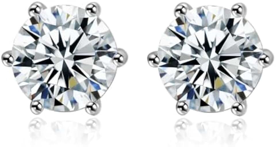 IGI Certified Lab Grown Diamond Solitaire Stud Earrings 0.5 Ct - 3Ct Round Shape Screw Back 6 Prong Settings 14K White Gold Diamonds Earrings