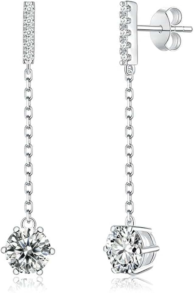 IGI Certified Lab Grown Diamond (D-F, VSI1-VI2, cttw) Dangle Earrings 0.5 Ct - 3Ct Round Shape 14K White Gold Diamonds Earrings for Women