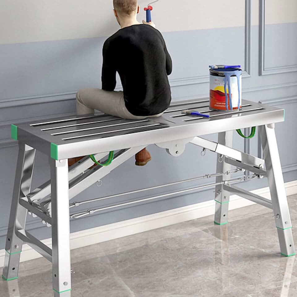Portable Multipurpose Folding Scaffolding Work Platform Scaffold Tower Ladder Stool Bench-Adjustable Work Platform with 400 kg Duty Rating,Carbon Steel Structure