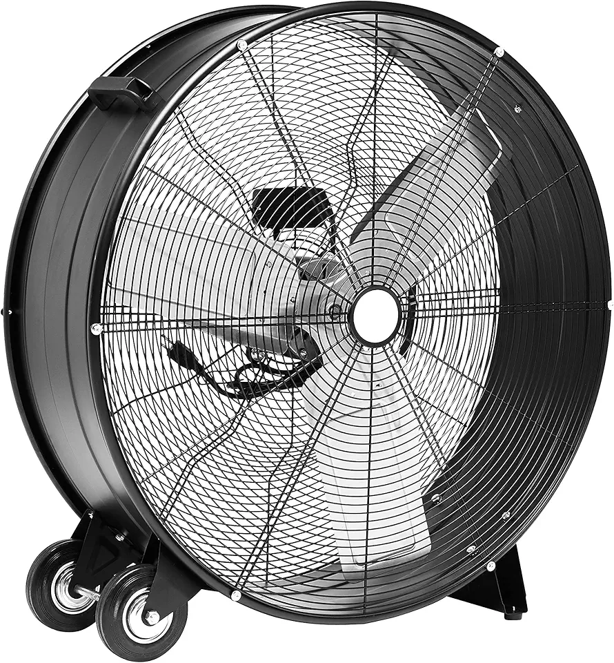 Amazon Basics 30-inch Industrial Drum Fan, UL-Certified, 300W, 2 Speed Settings, Metal Construction, 5.9-Ft Power Cord, 2 Wheels, Black (Previously AmazonCommercial Brand)