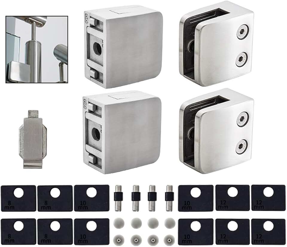 Glass Clamp - 40PCS Glass Bracket for 1/3 "-1/2 "(8mm-12mm) Tempered Glass, Stainless Steel 304 Flat Back Square Glass Clip Polished for Balustrade 、Staircase 、Handrail, Glass Holder Metal Casting