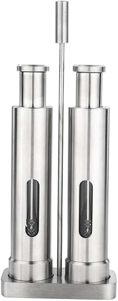 Manual Salt and Pepper Grinder Set Thumb Push Pepper Mill Stainless Steel Spice Sauce Grinders With Metal Holder Kitchen Tool(Black)