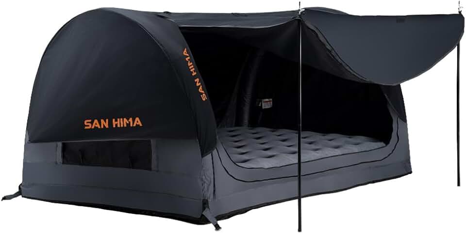 Camping Swag Tent - Air Beam Structure Tunnel Tent with Foam Mattress, 2-Side Access Canvas Dome Tent with Hurricane Air Pump, Rugged PVC Base, 4 Storage Pockets