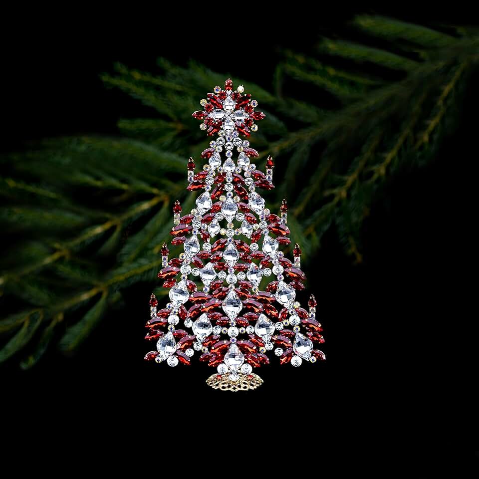 Intricate Christmas Tree (Clear and LT Siam), Table top Christmas Tree from Czech Rhinestones, Handmade christmas decoration.