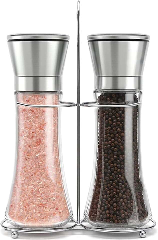 Pepper Grinder Stainless Steel Manual Salt Pepper Mill Grinder Adjustable Spice Mills with Holder Kitchen Tools for Cooking