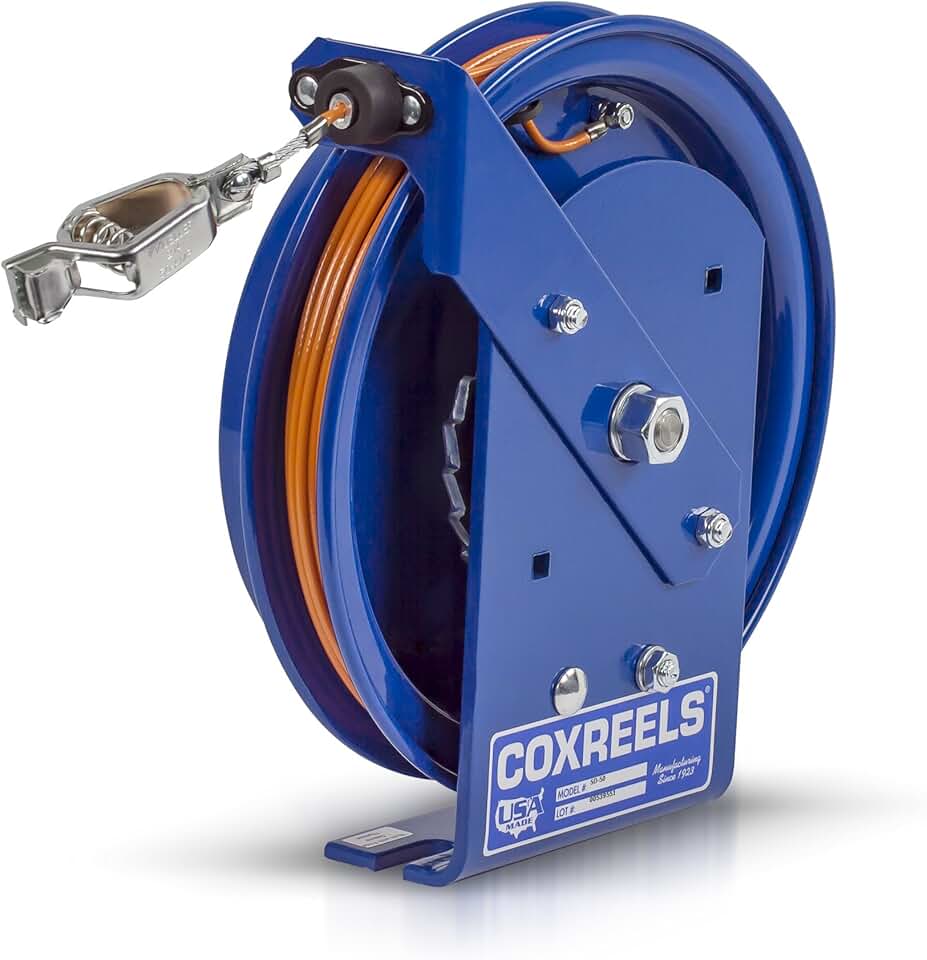 Coxreels SD-50 Retractable Static Discharge Cable Reel SD Series, 50’- Easy Maintenance Compact Design - Heavy Duty Steel Construction, Made in USA, Blue