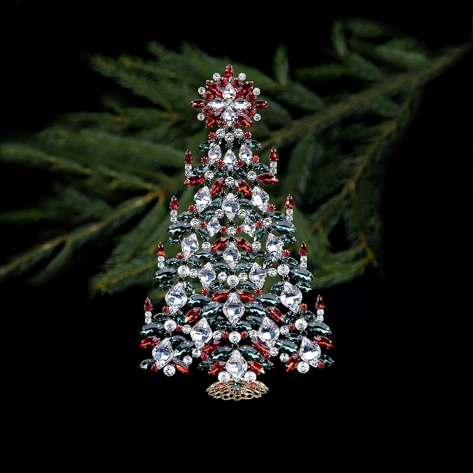 Intricate Christmas Tree (Christmas Colours), Table top christmas tree made from Czech rhinestones, decoration for mum and grandma
