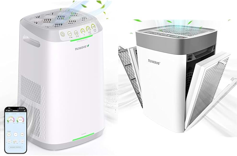 Nuwave Air Purifiers for Home Large Room, 20Yr Washable & Portable Air Purifier for Home Bedroom Up to 1361 SqFt with Air Quality Sensor,H13 True HEPA,Carbon Filter Captures