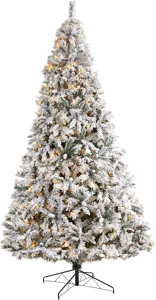 10ft. Flocked White River Mountain Pine Artificial Christmas Tree with Pinecones and 800 Clear LED Lights
