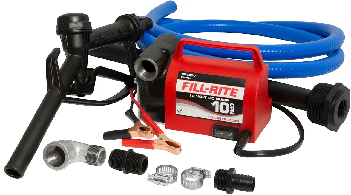 Fill-Rite FR1616 Portable Diesel Transfer Pump w/Discharge Hose, Manual Nozzle, Power Cable/Clips, & Suction Pipe