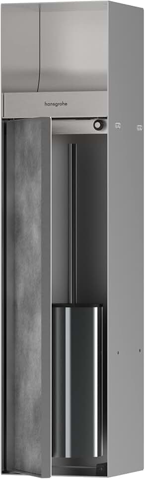 hansgrohe XtraStoris Rock Recessed Toilet Brush Holder with Toilet Paper Holder & Tileable Door in Brushed Stainless Steel, 56062800