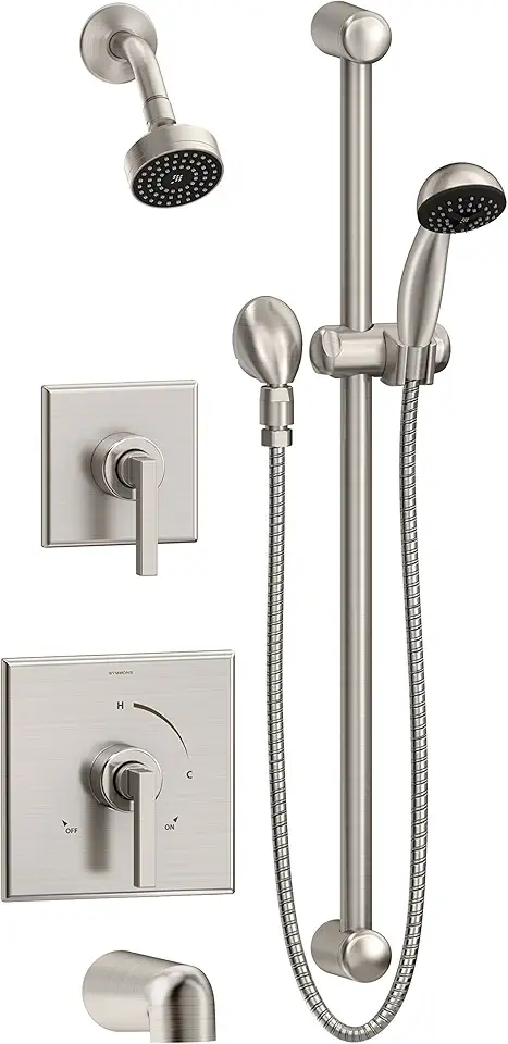 Symmons 3606-H321-V-STN-1.5-TRM Duro 2-Handle Tub and 1-Spray Shower Trim with 1-Spray Hand Shower in Satin Nickel (Valves Not Included)