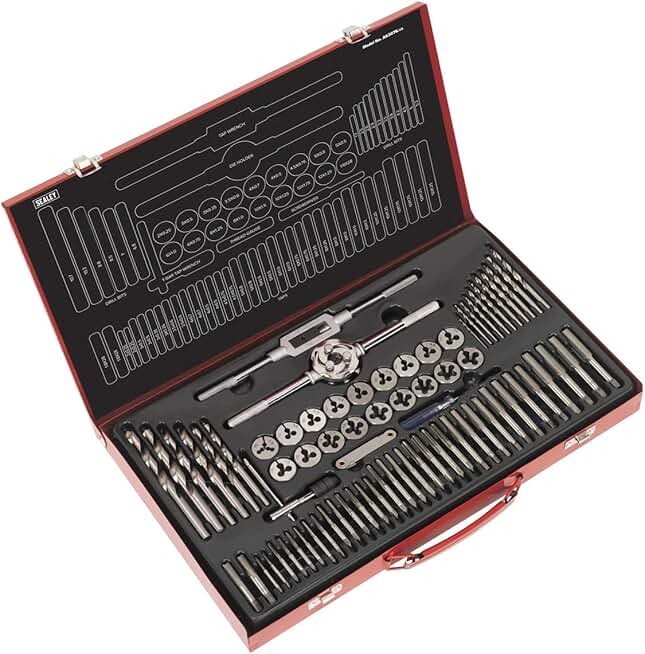 Sealey AK3076 Metric Tap and Die Set, Split Dies, 76 Pieces, Red