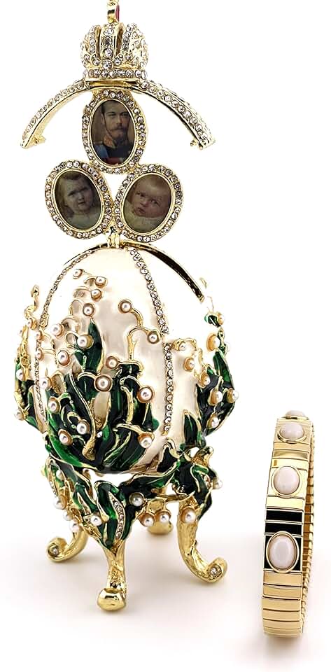Imperial Egg HANDMADE Lillies Photo frame Russian Romanov style Egg 260 Austrian Crystal HANDSET Pure Gold decor Christmas gift for Mother Grandma Anniversary Birthday present for Mom