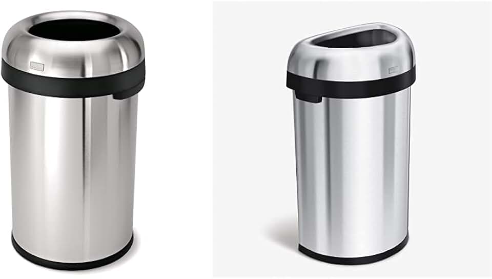 15.9 Gallon / 21.1 Gallon Brushed Stainless Steel Trash Can, Open Top, Extra-Wide 10.5-Inch Lid, Heavy-Gauge Steel, Commercial Grade