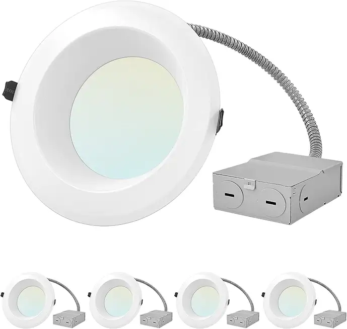 LUXRITE 6 Inch Commercial LED Downlight with J-Box, 15/19/24W, 4 Color Selectable 3000K-5000K, CRI 90, 1200/1600/2000 Lumens, 0-10V Dimmable, 120-277V, Canless LED Recessed Light, Wet Rated (4 Pack)