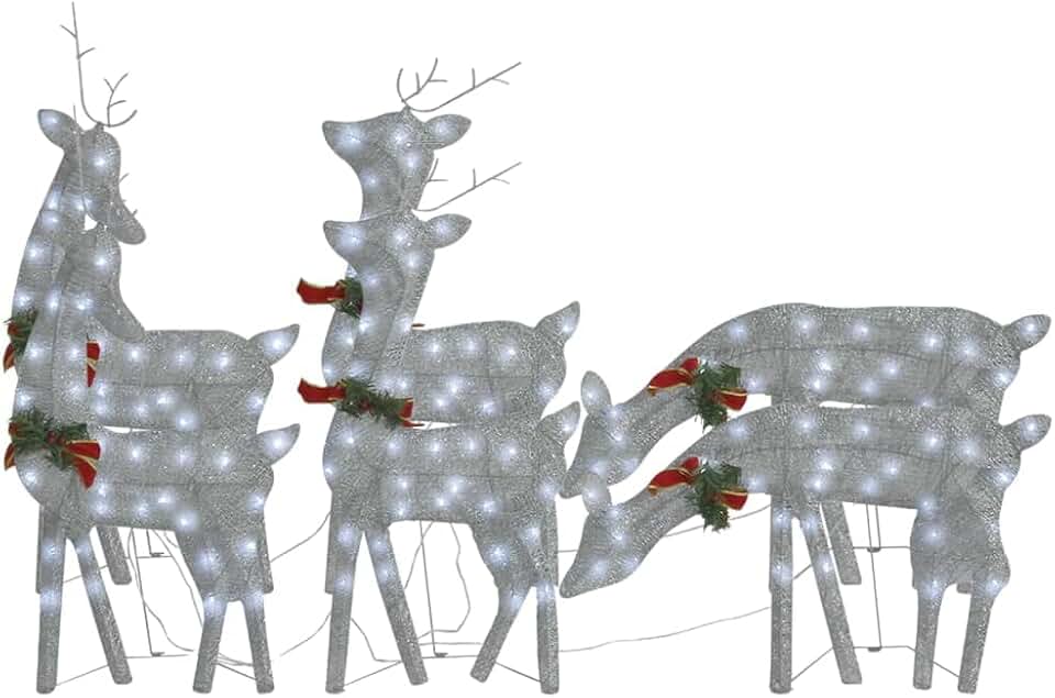 Home Garden Asomie Decor Seasonal Holiday Decorations Christmas Lighting Christmas Reindeers 6 pcs Silver Cold White Mesh US Stock Fast Shipment Silver