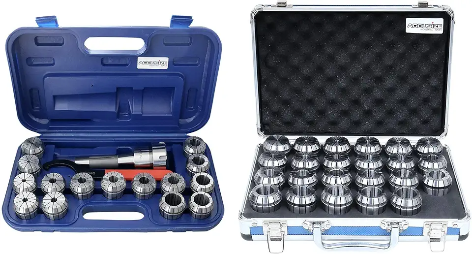 Accusize Industrial Tools - ER40 Collet Set with R8 Bridgeport Shank and Wrench Bundle, 15 Pc & 23 Pc