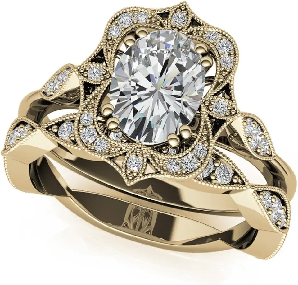 3 CT Oval Cut Moissanite Engagement Ring Set For Women Wedding Bridal Ring Set Antique Vintage Style Halo 925 Silver 10K 14K 18K Solid Gold Anniversary Promise Ring Set (7)