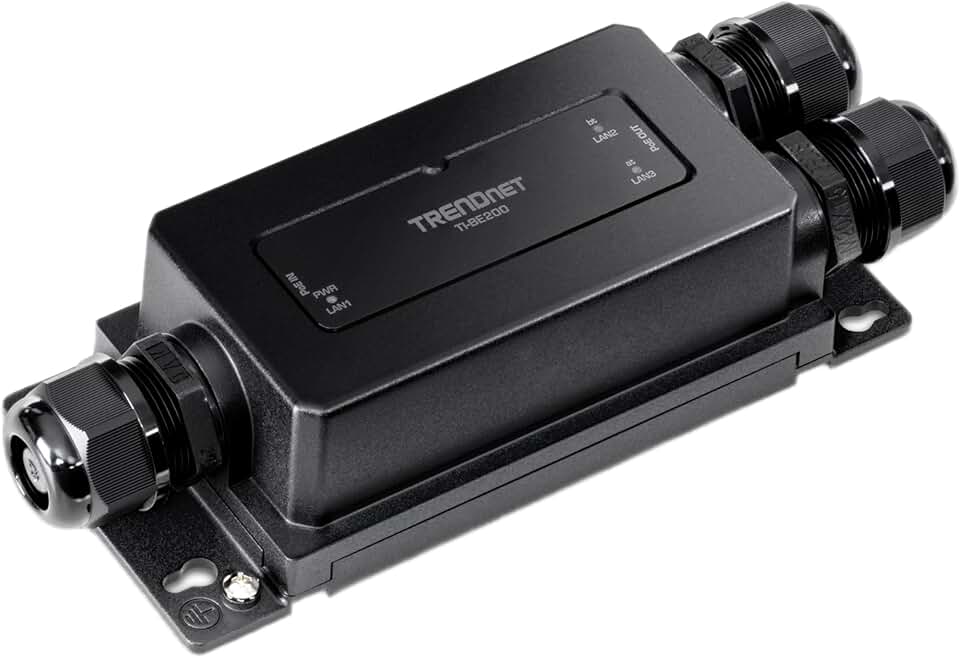 TRENDnet 2-Port Industrial Outdoor Gigabit PoE++ Extender, Hardened IP67 Extreme Temperature Rated Housing, Extends PoE++ Connection up to 200m (656 ft.) for up to 2 Devices, Black, TI-BE200