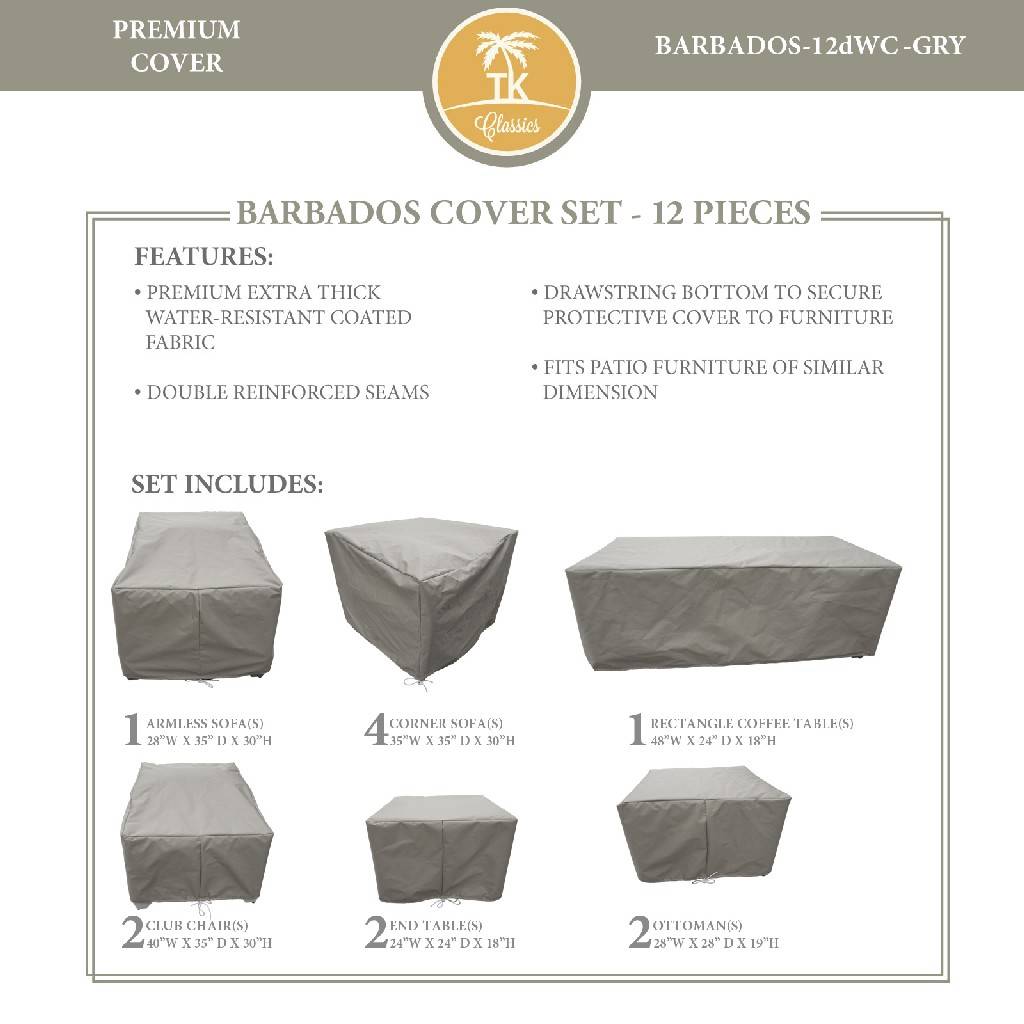 BARBADOS-12d Protective Cover Set, in Grey - TK Classics BARBADOS-12dWC-GRY