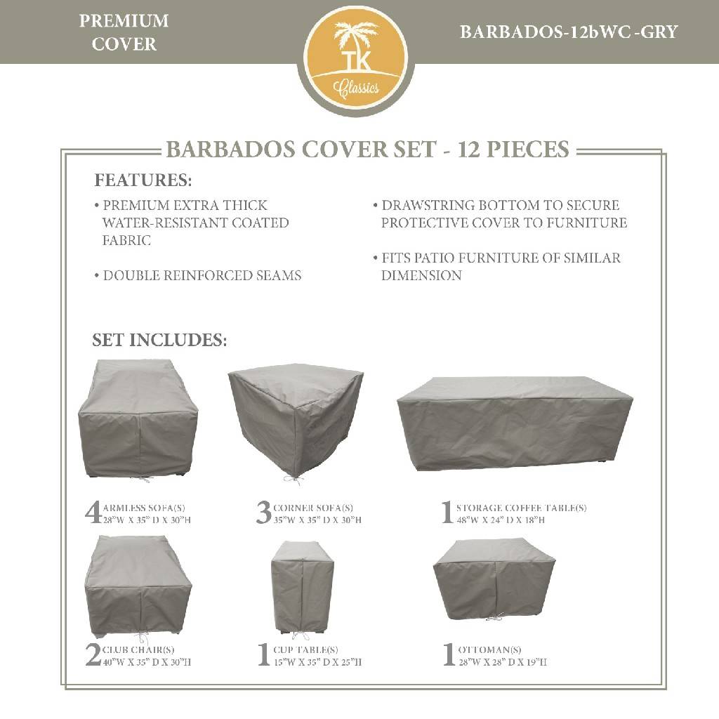 BARBADOS-12b Protective Cover Set, in Grey - TK Classics BARBADOS-12bWC-GRY