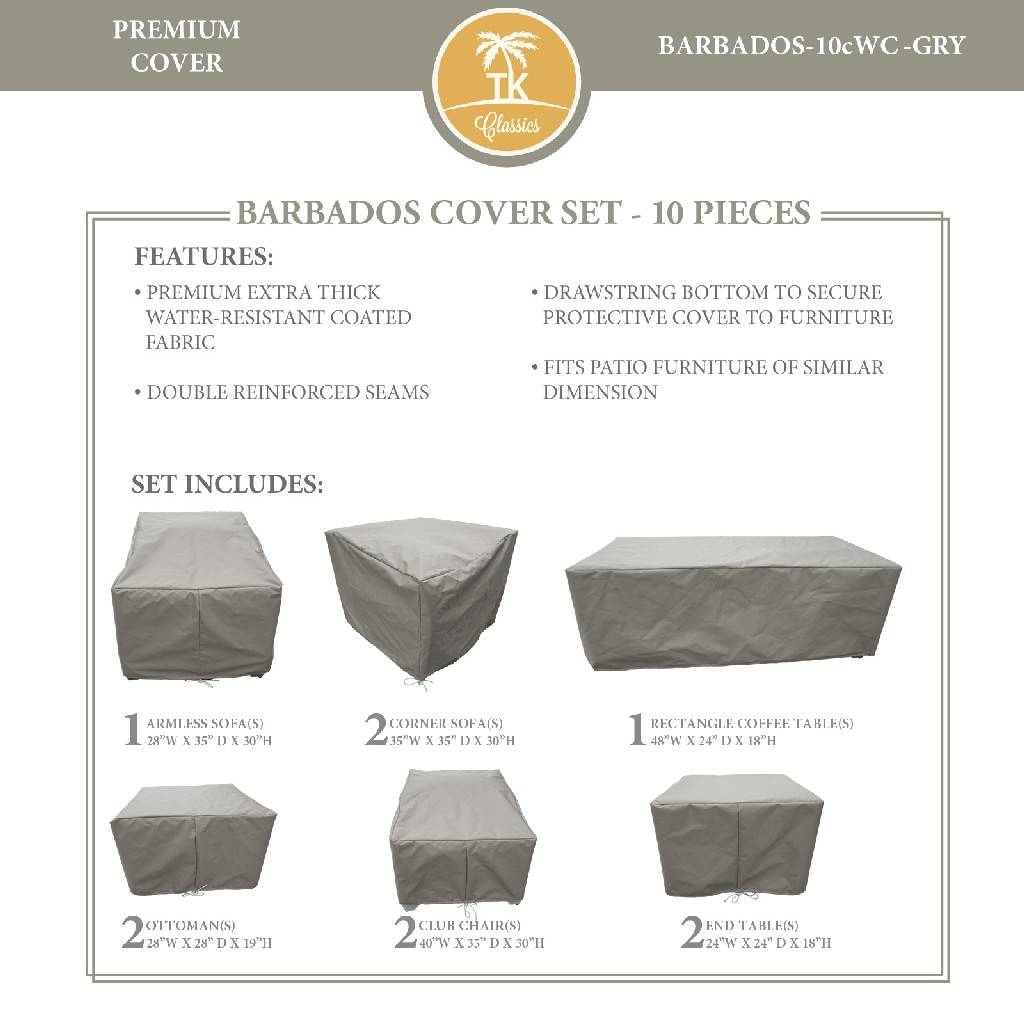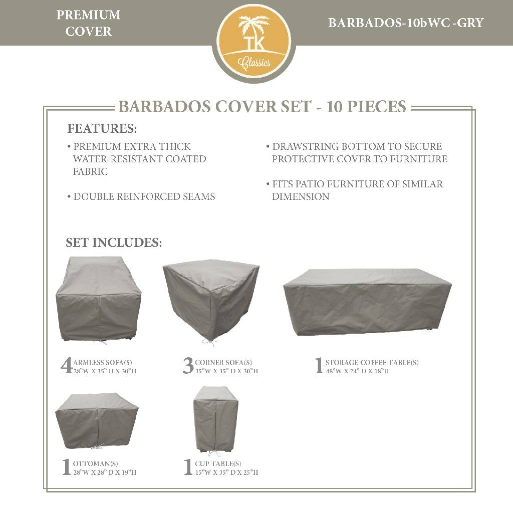 BARBADOS-10c Protective Cover Set, in Grey - TK Classics BARBADOS-10cWC-GRY
